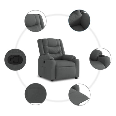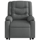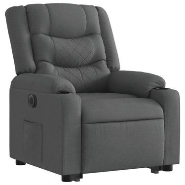 Asseyez-vous et détendez-vous dans ce fauteuil inclinable électrique très confortable ! Fonction de levage électrique : ce fauteuil inclinable pour personnes âgées est équipé d'un moteur électrique pour la fonction de levage. Grâce à la fonction qui pousse toute la chaise vers le haut, vous pouvez facilement vous tenir debout sans stresser votre dos et vos genoux en appuyant simplement sur le bouton.Fonction d'inclinaison électrique : ce fauteuil inclinable est également équipé d'un moteur électrique qui permet de régler automatiquement le repose-pied et le dossier dans n'importe quelle position, selon votre confort, en appuyant simplement sur le bouton situé sur le côté du fauteuil. Cette fonction permet une inclinaison maximale de 135 degrés. En outre, le dossier peut revenir automatiquement à sa position d'origine par une simple pression sur le bouton.Expérience d'assise confortable : le siège, le dossier et les larges accoudoirs bien rembourrés recouverts de tissu procurent une sensation confortable et chaleureuse, vous permettant de vous sentir enveloppé lorsque vous êtes assis. Le tissu présente un aspect simple et épuré et est respirant et durable.Poche latérale pratique : ce fauteuil est doté d'une poche latérale pour vous permettre de garder vos objets essentiels à portée de main.Cadre solide et stable : le cadre en bois et en métal offre une structure solide et une grande stabilité. Ce fauteuil inclinable est confortable et durable.