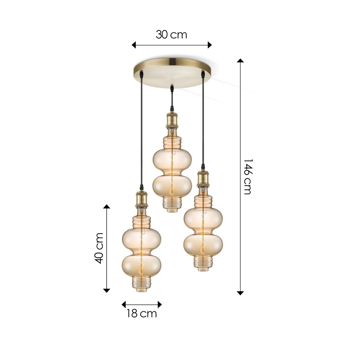 Home Sweet Home hanglamp vintage rond Diabolo 3L G180 dimbaar amber