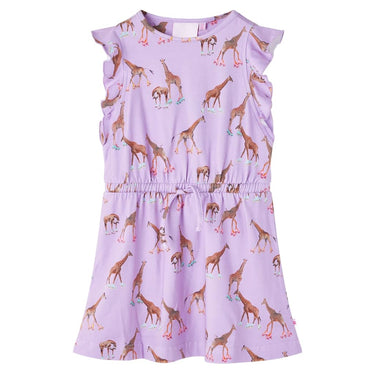 Cette robe pour enfant présente une encolure ronde, des manches à volants et une taille élastique avec cordon de serrage réglable. La robe entière est ornée d'un imprimé de girafes sur patins à roulettes. La robe courte pour enfants est confectionnée dans une matière douce comprenant 94 % de coton et 6 % d'élasthanne pour plus de confort et de respirabilité.
