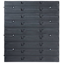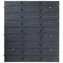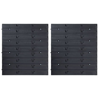Organisez votre garage, salle de bricolage et atelier grâce à cet ensemble de panneaux muraux et de bacs de rangement. Le support fonctionnel avec boîtes empilables offre de nombreuses possibilités de stockage pour les petits objets tels que vis, clous, écrous, douilles, ferrures, etc. Les 2 panneaux muraux solides peuvent contenir 30 boîtes, qui peuvent être étiquetées, pour une meilleure vue d'ensemble de toutes les petites pièces. Vous pouvez sortir les bacs de rangement individuellement et les empiler les uns sur les autres. L'ensemble de supports est extensible et se monte facilement sur le mur d'un garage ou d'une cabane. Ce kit de bacs de rangement peut être agencé en fonction de vos besoins.