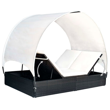 Dit hoogwaardige 2-persoons ligbed met luifel combineert stijl met functionaliteit en is de ideale plek om te ontspannen in de buurt van het zwembad, op uw terras of in de tuin.