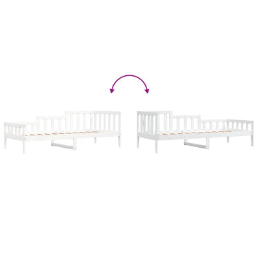 Ce lit de jour polyvalent en bois peut être utilisé comme un lit dans la chambre à coucher et est également idéal comme un canapé dans le salon. Il s'adapte parfaitement à vos différents besoins, vous offrant beaucoup d'espace pour dormir et vous reposer. Bois de pin massif : le bois de pin massif est un matériau naturel magnifique. Le bois de pin a un grain droit et les nœuds donnent au matériau son aspect caractéristique et rustique. Le lit d'appoint est en bois de pin massif, plus stable et durable.Barres de lit sur 3 côtés : ce lit d'appoint présente un design unique sur le côté du lit, ce qui offre un sentiment de sécurité et ajoute une touche de style sophistiqué à votre intérieur.Design à lattes : le sommier à lattes en bois permet une meilleure circulation de l'air pour garder le matelas frais plus longtemps, améliorant la capacité de poids du lit et assurant la stabilité.Canapé-lit multifonctionnel : ce lit de jour en bois peut être utilisé comme canapé pendant la journée ou comme lit la nuit, offrant une solution rapide pour accueillir des invités pour la nuit.Espace de rangement supplémentaire : profitez de l'espace sous le canapé pour ranger divers objets. Parfait pour ranger des boîtes pour organiser des vêtements, des jouets ou des couettes. Bon à savoir :Un matelas n'est pas inclus avec ce lit. Nous offrons une sélection variée de matelas. Vous pouvez consulter notre boutique pour trouver un matelas assorti.