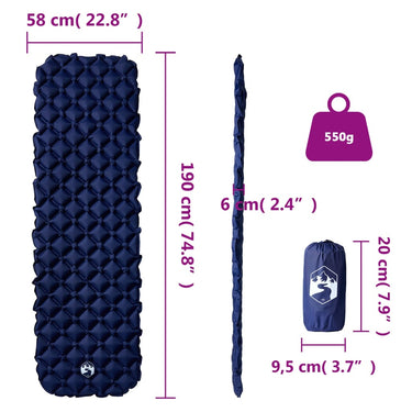 Matelas de camping gonflable 1 personne bleu marine 190x58x6 cm
