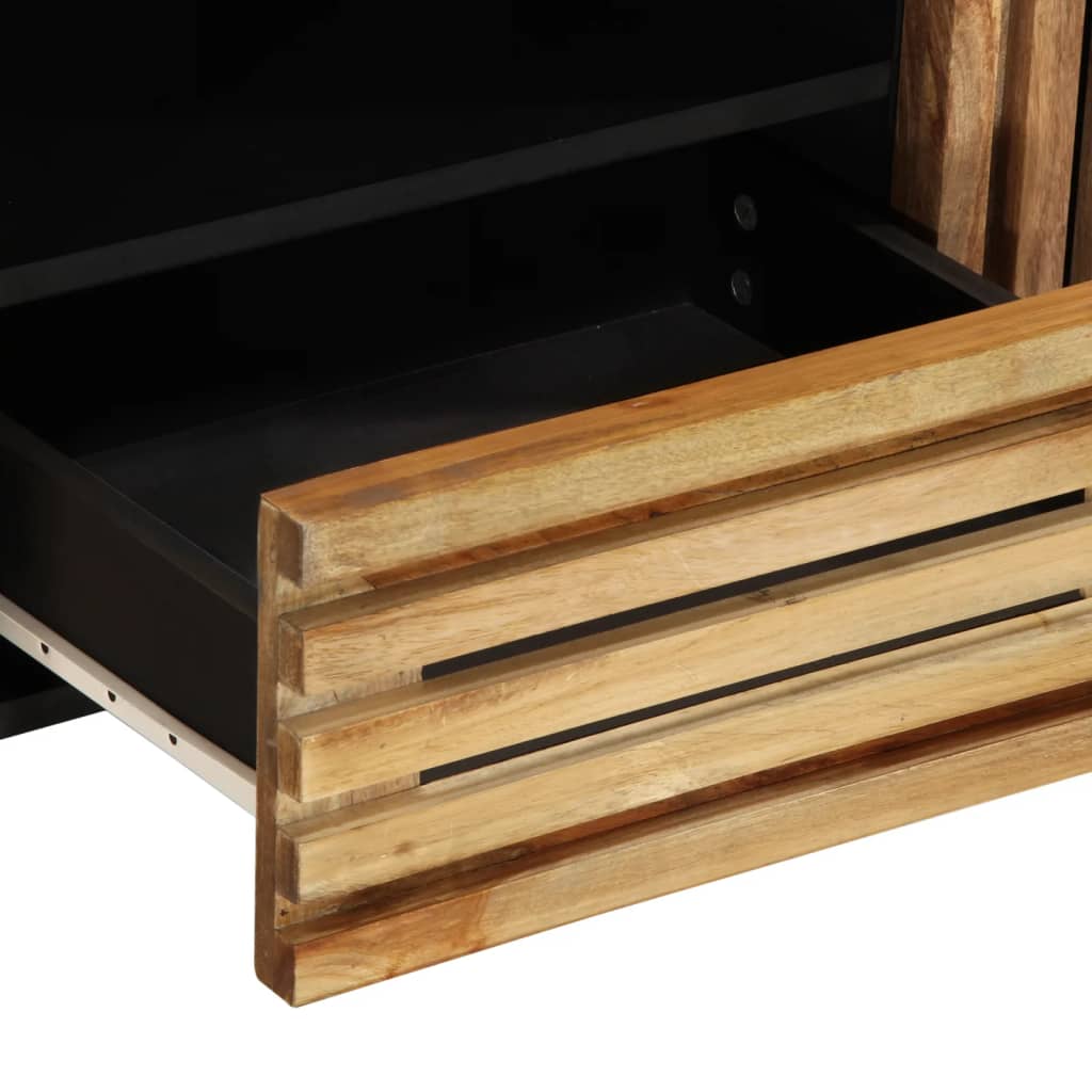 Ce meuble TV robuste de style industriel constitue un supplément intemporel à votre salon ou à votre chambre à coucher. Matériau robuste et stable : le bois de manguier massif est un bois dur tropical solide qui permet de fabriquer des meubles robustes. Ses belles veines de bois font que chaque pièce de meuble soit légèrement différente l'une de l'autre.Grand espace de rangement : ce banc TV offre un grand espace de rangement pour garder vos magazines, livres, DVD, télécommandes et autres petits objets bien organisés et à portée de main.Facile à nettoyer : le meuble multimédia est facile à nettoyer avec un chiffon humide et nécessite moins d'entretien.