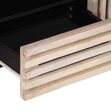 - Matériau : bois de manguier massif avec une finition blanchie, acier