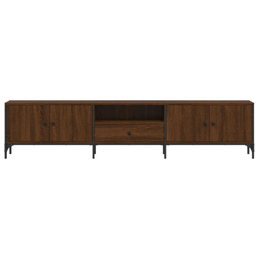 Doté d'un design à la fois tendance et pratique, ce meuble TV deviendra un point central de votre pièce.Matériau robuste et durable : le bois d'ingénierie est d'une qualité exceptionnelle avec une surface lisse et présente également résistance, stabilité et résistance à l'humidité. Le cadre métallique du meuble TV assure robustesse et stabilité.Grand espace de rangement : le meuble multimédia offre un grand espace de rangement pour vos magazines, DVD et autres objets pour les tenir bien organisés et à portée de main.Dessus robuste : le dessus robuste du meuble hifi est idéal pour exposer des objets décoratifs, des cadres photo ou des plantes en pot.Pieds réglables : les pieds réglables munis de coussinets en plastique maintiennent le centre de divertissement en équilibre sur un sol inégal et augmentent sa stabilité.Portes pratiques : gardez vos essentiels à l'abri de la poussière en les cachant derrière les portes de la console TV.