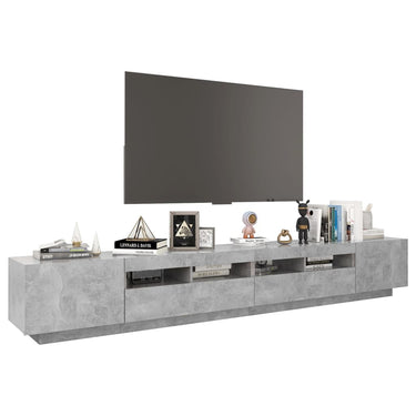 Avec un design à la fois élégant mais pratique, ce meuble TV avec éclairage LED est destiné à devenir un point central de votre pièce. Matériau stable et durable : le bois d'ingénierie est un matériau durable et stable dont la surface lisse résiste à l'humidité, à la déformation et au fendillement, ce qui en fait un choix fiable pour une grande variété de projets.Lumières LED RVB pour une ambiance agréable : ce meuble TV est doté de lumières LED qui peuvent être facilement ajustées pour créer un spectacle de lumière personnalisé. Vous pouvez personnaliser les modes, les couleurs et la luminosité pour améliorer l’ambiance de votre espace intérieur.Grand espace de rangement : ce meuble multimédia offre un grand espace de rangement pour garder vos magazines, livres, DVD et appareils multimédias bien organisés et à portée de main.Dessus stable et robuste : le dessus robuste est idéal pour placer votre téléviseur et vos systèmes stéréo ou certains objets décoratifs tels que des vases ou des plantes en pot.Facile à entretenir : le meuble TV à LED est facile à nettoyer à l'aide d'un chiffon humide et nécessite peu d'entretien. Bon à savoir :Ce produit est doté d'un connecteur USB qui nécessite une source d'alimentation USB de 5V certifiée (non incluse).