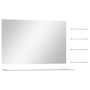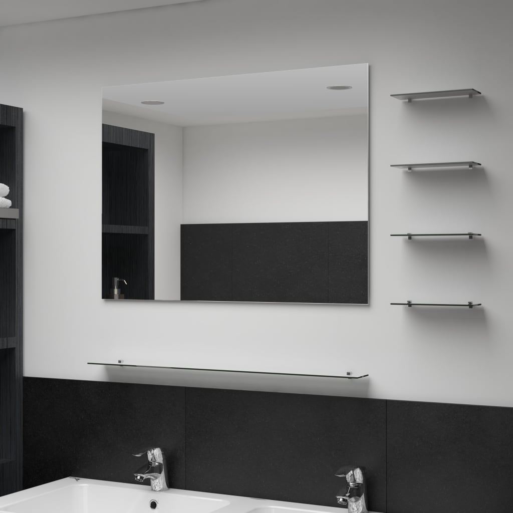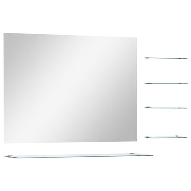 Notre miroir mural avec étagères est orné d'un design élégant. Il sera un supplément pratique et décoratif à votre salle de bain, salon ou chambre à coucher. Fabriqué en verre trempé de qualité, ce meuble de salle de bain est durable et facile à nettoyer. Le miroir rectangulaire encadré au design minimal et contemporain mettra en valeur n'importe quelle pièce, tandis que les quatre petites étagères et la grande étagère en font une pièce pratique pour un rangement supplémentaire. Vous pouvez ranger et exposer les essentiels de la décoration ou du dressing de manière propre et ordonnée. Ce miroir est facile à assembler.