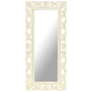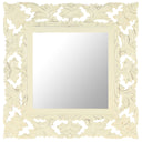 Miroir sculpté à la main Blanc 50x50 cm Bois de manguier massif