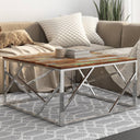- Stevig en stabiel frame: het roestvrijstalen frame van de woonkamertafel biedt stevigheid en stabiliteit.