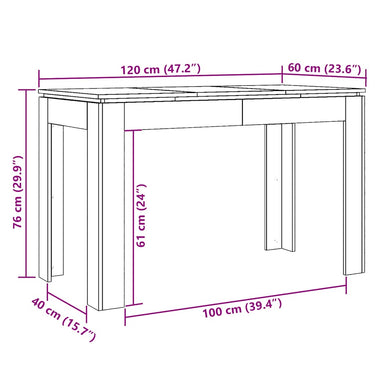 Table à manger chêne artisanal 120x60x76 cm bois d'ingénierie