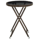 Cette table à thé à la mode et élégante est un supplément remarquable à votre jardin, patio ou balcon. Cette table d’extérieur, en résine tressée résistante aux intempéries, est facile à nettoyer, résistante à l'usure et adaptée à une utilisation quotidienne. Le cadre en acier enduit de poudre le rend très robuste et durable. Le dessus de table robuste est fabriqué en verre trempé. Il est facile à nettoyer avec un chiffon humide et idéal pour garder les boissons et la nourriture à portée de main. Grâce à la conception pliable, la table basse peut être facilement repliée pour économiser de l’espace lorsqu'elle n’est pas utilisée.
