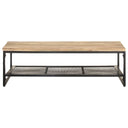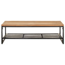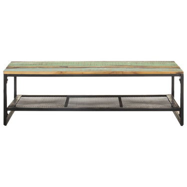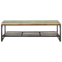 Ajoutez un style rustique à votre décoration intérieure actuelle avec cette table basse en bois. Cette table de canapé est faite de bois de récupération massif, provenant de solives, de planchers et de poutres de soutien de vieux bâtiments démolis. Donc, il peut se composer de différents types de bois comme le pin, le teck, le chêne, le bois de manguier, l’acacia, etc. Cela signifie également que le bois de récupération conserve les caractéristiques de ces types de bois. Le bois de récupération est déjà vieilli, altéré et séché, donc il ne rétrécit pas ou ne se plie pas. De plus, les pieds en fer enduit de poudre ajoutent à sa robustesse. L’étagère offre un espace de rangement supplémentaire pour conserver vos divers objets essentiels. Note importante : les couleurs varient d'une pièce à l'autre, rendant chaque table de salon en bois unique.