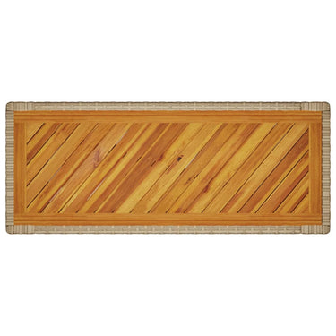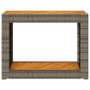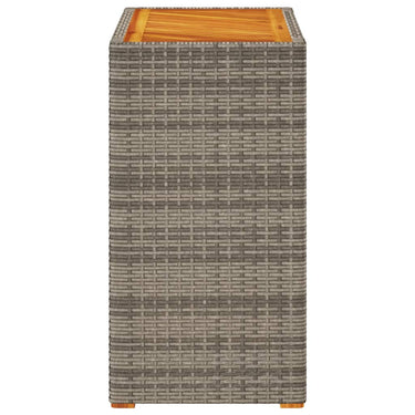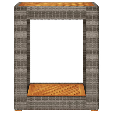 Rassemblez-vous autour de cette table d'appoint de jardin polyvalente pour savourer un café ou discuter avec votre famille et vos amis dans le jardin, dans la cour ou sur la terrasse ! Matériau durable : la résine tressée, également connue sous le nom de poly rotin, est un matériau synthétique solide et nécessitant peu d'entretien qui ressemble au rotin naturel. Il est léger, facile à nettoyer et couramment utilisé pour les meubles d'extérieur en raison de sa durabilité et de ses propriétés de résistance aux intempéries.Dessus stable et facile à nettoyer : cette table de jardin a un dessus en bois d'acacia robuste, durable et facile à nettoyer avec un chiffon humide.Cadre robuste et stable : le cadre en acier enduit de poudre assure la solidité et la stabilité du meuble de jardin pour une utilisation quotidienne à l'extérieur. Bon à savoir :Pour que vos meubles d'extérieur restent beaux, nous vous recommandons de les protéger avec une housse imperméable.