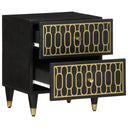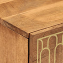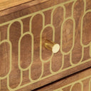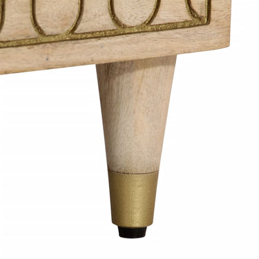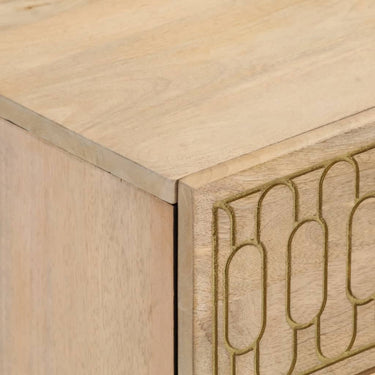 Cette table de chevet au design élégant est un supplément intemporel à votre décoration intérieure. Bois de manguier massif : le bois de manguier massif est un bois dur tropical solide qui fait des meubles robustes. Ses beaux grains de bois rendent chaque meuble légèrement différent l'un de l'autre. Fabriquée en bois de manguier massif, le meuble est durable et stable.Grand espace de rangement : la table de chevet est conçue avec 2 tiroirs pour garder les choses organisées et à portée de main.Dessus stable : le dessus de l'armoire latérale est parfait pour exposer vos objets décoratifs, cadres photo et plantes en pot.Pieds robustes : les pieds en fer ajoutent à la robustesse et à la stabilité du mobilier de chambre.Style rétro : cette table de chevet avec motifs floraux sculptés à la main apporte le luxe d'un style rétro à votre intérieur étant le point central de votre pièce. Bon à savoir :Chaque article est unique, avec des variations de couleurs et de grains. La livraison est aléatoire, ce qui garantit l'exclusivité et l'individualité de votre produit.