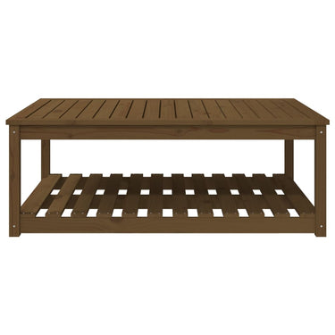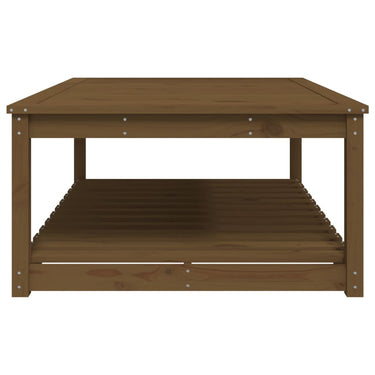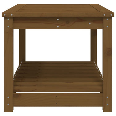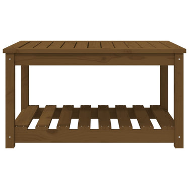 Profitez d'un bon repas avec votre famille et vos amis autour de cette table de jardin en bois ! Elle apportera une touche d'élégance à votre patio, jardin ou terrasse. Bois de douglas massif : le bois de douglas massif est un bois très durable qui est parfait pour l'extérieur. Le bois de douglas est également solide et nécessite moins d'entretien même sous l'influence des intempéries.Dessus de table stable : le dessus de table offre un excellent support pour accueillir vos boissons, collations, corbeilles de fruits et vos décorations préférées.Espace de rangement supplémentaire : la table de terrasse est conçue avec une étagère ouverte qui offre un espace de rangement supplémentaire pour garder vos divers objets quotidiens bien organisés et à portée de main.Structure robuste : le cadre en bois assure la solidité et la stabilité de la table de salon.Applications larges : la table de salon de jardin, avec son design remarquable, crée un aspect général agréable qui s'intègre sans effort dans n'importe quel décor. Bon à savoir :Pour faciliter au maximum le montage, chaque produit est livré avec des instructions.Remarque :Pour que vos meubles d'extérieur restent beaux, nous vous recommandons de les protéger avec une housse imperméable.