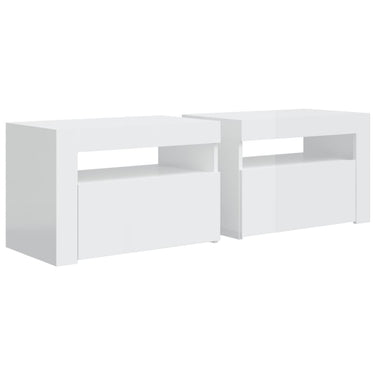 Avec un design à la fois tendance et pratique, ces tables de chevet constituent certainement un point central de votre pièce. Matériau pratique : le bois d'ingénierie est d'une qualité exceptionnelle avec une surface lisse et présente également résistance, stabilité et résistance à l'humidité. Fabriquée en bois d'ingénierie, les tables de chevet sont faciles à nettoyer.Lumières LED RVB : ces tables de chevet sont dotées de lumières LED RVB, qui ont différents menus pour changer la couleur des lumières et laisser la couleur s'ajuster automatiquement. Les lumières LED soulignent l'aspect moderne et contribuent à la sensation de tendance.Grand espace de rangement : l'espace de rangement des tables de chevet facilite l'organisation des articles.Armoires multifonctionnelles : les dessus robustes sont idéaux pour exposer des objets décoratifs, des cadres photo ou des plantes en pot. Ils peuvent également être utilisés comme armoires latérales, tables de bout, etc. Bon à savoir :Ce produit est doté d'un connecteur USB qui nécessite une source d'alimentation USB de 5V certifiée (non incluse).