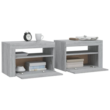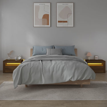 Tables de chevet 2 pcs avec LED vieux bois 60x35x40 cm