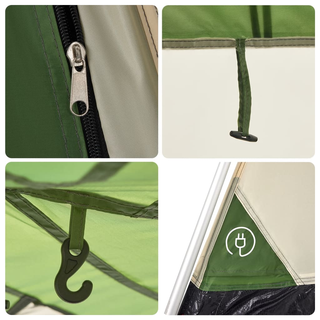 Cette tente familiale au look moderne vous protège des intempéries et offre un endroit confortable pour des aventures partout. Conception imperméable à l'eau tout autour : cette tente de camping, fabriquée en polyester avec un revêtement PU, est imperméable et résistante au vent. Les coutures étanches empêchent efficacement l'infiltration de l'eau de pluie, tandis que le tapis de sol robuste contribue à maintenir l'intérieur sec et confortable.Système de dégagement rapide : installez la tente sans effort grâce au système de dégagement rapide ! Posez la tente, étendez les poteaux pré-assemblés jusqu’à ce qu’ils s’enclenchent, et le tour est joué !Double-toit amovible : le double toit amovible peut être fixé au sommet de la tente pour une protection contre les intempéries et plus d’intimité.Accès pratique au cordon électrique : le E-port vous permet de connecter facilement une rallonge à votre tente à partir d'une source d'alimentation externe.Légère et portable : le design pliable et léger vous permet d'emballer facilement la tente et de la ranger dans le sac de transport inclus pour la transporter facilement. Attention :Tenir toutes les flammes et les sources de chaleur loin du tissu de ce produit.