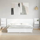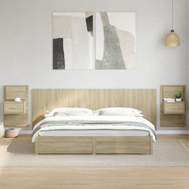 La tête de lit robuste avec armoires, au design classique, donne à votre cadre de lit un aspect complet et convient à toute chambre à coucher. Matériau robuste : le bois d'ingénierie est d'une qualité exceptionnelle avec une surface lisse et présente également résistance, stabilité et résistance à l'humidité.Design mural : les tables de chevet flottantes et la tête de lit peuvent être fixées au mur. De cette façon, vous pouvez maximiser votre espace au sol et garder la zone propre.Espace de rangement : l'unité de chevet dispose d'un espace de rangement spacieux qui vous permet de garder vos affaires organisées. ATTENTION :Les vis et les chevilles pour l'intérieur du mur ne sont pas incluses. Recherchez et utilisez des vis et des chevilles adaptées à vos murs. Si vous n'êtes pas sûr, demandez conseil à un professionnel. Lisez et suivez attentivement chaque étape des instructions.