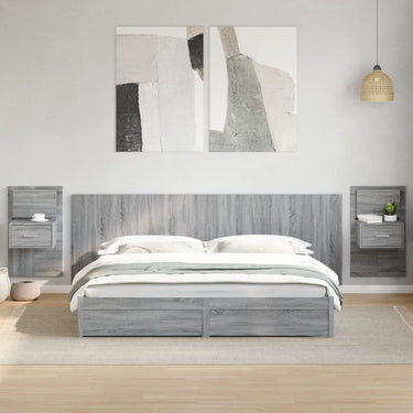 Tête de lit avec armoires Gris béton Bois d'ingénierie