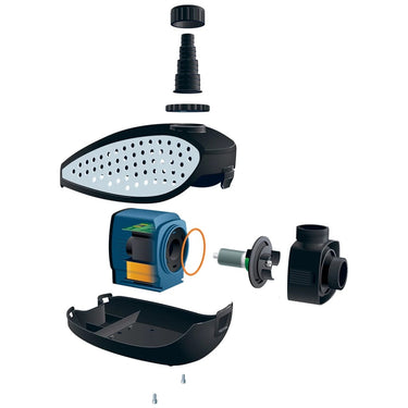 La pompe de filtration est équipée d'un moteur très économe en énergie, puissant et fiable avec un arbre en céramique. La pompe peut traiter des particules de saleté d'une taille maximale de 6 mm. La consommation électrique de la Smartmax 5000FI est considérablement inférieure à celle des pompes de bassin comparables équipées de moteurs asynchrones.