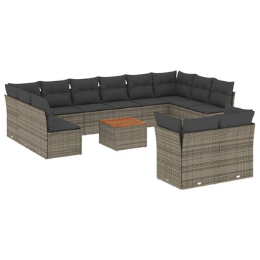 Salon de jardin avec coussins 13 pcs noir résine tressée
