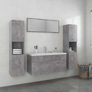 Avec cet élégant ensemble de meubles de salle de bain, vous pouvez créer un espace de rangement supplémentaire pour votre salle de bain avec un aspect remarquable et bien rangé. Les lignes épurées et le design élégant s'intègrent parfaitement à votre salle de bain. L'ensemble de meubles se compose d'une armoire d'évier, de 2 armoires hautes et d'un miroir. L'armoire d'évier chic a 1 compartiment et le dessus de celle-ci est idéal pour placer l'évier. Chaque armoire haute comporte un total de 5 compartiments et 2 portes, offrant amplement d'espace pour ranger des objets dans votre salle de bain. Le miroir ajoute également une excellente apparence à votre décoration intérieure. De plus, cet ensemble de salle de bain est facile à nettoyer avec un chiffon humide. Veuillez noter que le robinet et le drain ne sont pas inclus dans la livraison.