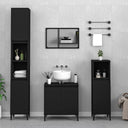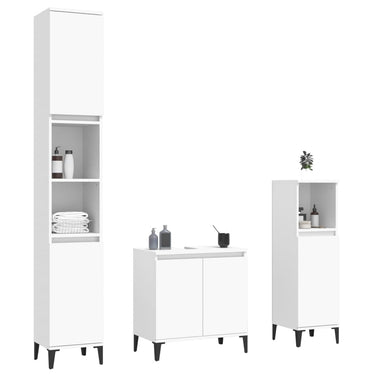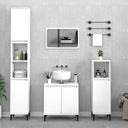 Cet ensemble de meubles de salle de bain, avec un espace de rangement spacieux, est un excellent supplément à votre salle de bain, ce qui lui donne une apparence ordonnée et saisissante ! Matériau durable : le bois d'ingénierie est d'une qualité exceptionnelle avec une surface lisse et présente également résistance, stabilité et résistance à l'humidité.Grand espace de rangement : ces armoires de salle de bain offrent un grand espace de rangement pour garder vos fournitures de salle de bain bien organisées.Pieds en métal : les pieds en métal ajoutent un style moderne et calme à votre intérieur tout en assurant la stabilité.Surface facile à nettoyer : l'ensemble de salle de bain est facile à nettoyer avec un chiffon humide.Design élégant : les lignes épurées et le design élégant se fondent parfaitement dans votre salle de bain. Attention :Pour éviter qu'il ne soit renversé, ce produit doit être utilisé avec le dispositif de fixation au mur fourni. Bon à savoir :Les vis et les chevilles pour l'intérieur du mur ne sont pas incluses. Nous vous conseillons de trouver et d'utiliser des vis et des chevilles adaptées spécifiquement à vos murs. Si vous n'êtes pas sûr, vous pouvez consulter un professionnel. Veuillez lire et suivre chaque étape des instructions.