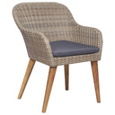 - Matériau : polyrotin, acier thermolaqué, tissu (100 % polyester) et bois d'acacia massif finition huilée