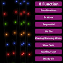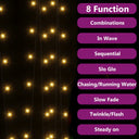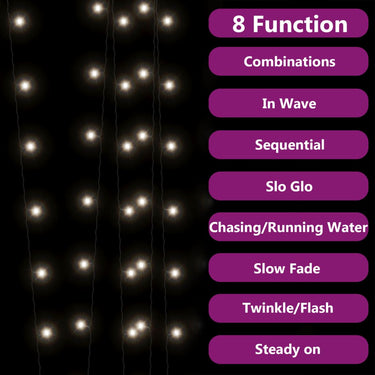 La lampe solaire féerique est parfaite pour une utilisation comme un complément d’éclairage à tout projet décoratif. Elle est adaptée pour Noël, fêtes, mariages et autres jours fériés. Pendant la journée, le panneau solaire efficace convertit la lumière du soleil en énergie électrique emmagasinée dans la batterie intégrée. La nuit, les guirlandes lumineuses s'allument automatiquement. La guirlande lumineuse est équipée de 200 LED à économie d’énergie, créant une performance d’éclairage magique. Elle dispose de 8 effets lumineux différents : mode combiné, vagues, mode séquentiel, mode de lueur lente, clignotement, mode d'atténuation lente, scintillement et éclairage continu. Il s'agit d'un excellent accessoire décoratif pour éclairer les espaces intérieurs et extérieurs. Remarque : la guirlande solaire doit être chargée directement par la lumière du soleil avant la première utilisation.