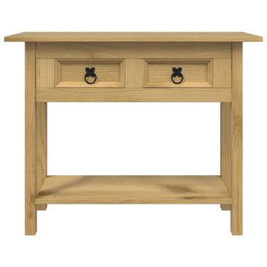 Cette table console de style Corona dégage un charme mexicain rustique qui en fera un supplément intemporel à votre salon ou à votre couloir. Cette table console rustique est fabriquée à partir de bois de pin de haute qualité, ce qui la rend résistante à l'usure. La table en bois robuste nécessite un entretien minimal, et les beaux grains de bois lui confèrent un charme rustique. La table a un dessus robuste, sur lequel vous pouvez placer votre téléviseur ou une lampe, de la nourriture et des boissons, ou des objets décoratifs tels que des cadres photo, des corbeilles de fruits ou des vases. Elle comprend 2 tiroirs et 1 étagère, offrant amplement d'espace pour ranger et organiser des livres, des magazines et d'autres articles. Grâce aux poignées pratiques, vous pouvez facilement ouvrir les tiroirs.