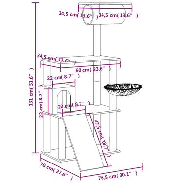 Arbre à chat avec griffoirs en sisal Gris clair 131 cm
