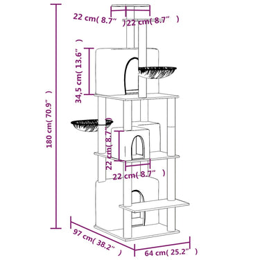Arbre à chat avec griffoirs en sisal Gris foncé 180 cm
