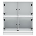 Cette armoire latérale, au look intemporel, est conçu pour être un excellent complément à votre intérieur. Matériau durable : le bois d'ingénierie est d'une qualité exceptionnelle avec une surface lisse et présente également résistance, stabilité et résistance à l'humidité.Grand espace de rangement : l'armoire offre un grand espace de rangement pour garder vos différents objets essentiels du quotidien bien organisés et à portée de main.Fonction d'affichage : le dessus de l'armoire de rangement est idéal pour exposer vos objets décoratifs, albums photo ou petites plantes.Portes vitrées pratiques : gardez votre espace sans encombrement en cachant de petits objets essentiels derrière les portes de l'armoire. En outre, les portes en verre vous permettent de voir à l'intérieur de l'armoire de rangement pour exposer joliment les objets. Attention :Pour éviter qu'il ne bascule, ce produit doit être utilisé avec le dispositif de fixation murale fourni.
