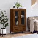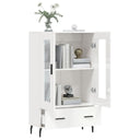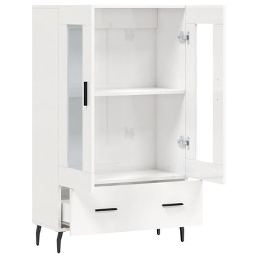 Cherchez-vous un buffet haut de gamme stylé ? Ce buffet haut ajoute un charme moderne à votre intérieur existant ! Matériau durable : le bois d'ingénierie est d'une qualité exceptionnelle avec une surface lisse et présente également résistance, stabilité et résistance à l'humidité. Pieds en métal : les pieds en métal ajoutent un style moderne et calme à votre intérieur tout en assurant la stabilité. Grand espace de rangement : le buffet offre un grand espace de rangement pour garder vos différents articles essentiels quotidiens bien organisés et facilement accessibles. Dessus stable et robuste : le dessus de l'armoire de rangement est parfait pour exposer vos objets décoratifs, cadres photo et plantes en pot. Design pratique : vos articles sont visibles derrière la porte vitrée et en même temps protégés de la poussière. De plus, les poignées facilitent l'ouverture de l'armoire latérale. Attention :Pour éviter qu'il ne soit renversé, ce produit doit être utilisé avec le dispositif de fixation au mur fourni.