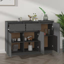 Ce buffet en bois classique, au look intemporel, est conçu pour être un excellent supplément à votre maison. Matériau de première qualité : le bois de pin massif est un matériau naturel magnifique. Le bois de pin a un grain droit et les nœuds donnent au matériau son aspect caractéristique et rustique.Grand espace de rangement : avec 2 tiroirs et 3 portes, l'armoire offre un grand espace de rangement pour garder vos différents éléments essentiels quotidiens bien organisés et facilement accessibles.Cadre robuste et stable : le cadre en bois assure robustesse et stabilité.Fonction d'affichage : le dessus du placard est idéal pour exposer vos objets décoratifs, albums photo ou petites plantes. Attention :Afin d'éviter le renversement, ce produit doit être utilisé avec le dispositif de fixation murale fourni.