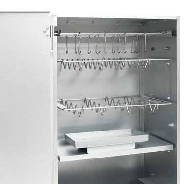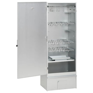 Utilisez ce fumoir multifonctionnel avec des copeaux de bois et un générateur de fumée froide pour préparer un festin et profiter d'un moment agréable en plein air avec votre famille ! Matériau durable : l'acier est un matériau exceptionnellement dur et solide. Il offre robustesse et stabilité. La galvanisation offre une meilleure protection contre la rouille et est utile pour les produits qui seront utilisés à l'extérieur.Grand espace de fumage : le fumoir d'extérieur offre beaucoup d'espace pour fumer la viande, le poisson, les saucisses, etc. Les crochets et les grilles en forme de S inclus rendent votre barbecue plus pratique.Fonction indicative : le fumoir est équipé d'un thermomètre permettant de vérifier la température de la chambre. Vous pouvez également garder un œil sur les aliments à l'intérieur pour assurer une meilleure grillade grâce à la vitre du fumoir.Générateur de fumée froide : il suffit de remplir le fumoir de sciure de bois et de l'allumer à l'aide d'une bougie chauffe-plat jusqu'à ce que la sciure de bois commence à changer de couleur. Retirez la bougie et placez le générateur de fumée dans le fumoir froid. La maille compacte de forme carrée permet aux copeaux de fumée de brûler uniformément et lentement pendant 16 heures. Attention :N'utilisez pas le barbecue dans un espace confiné et/ou habitable, par exemple dans une maison, une tente, une caravane, un camping-car ou un bateau. Risque d'intoxication mortelle au monoxyde de carbone.