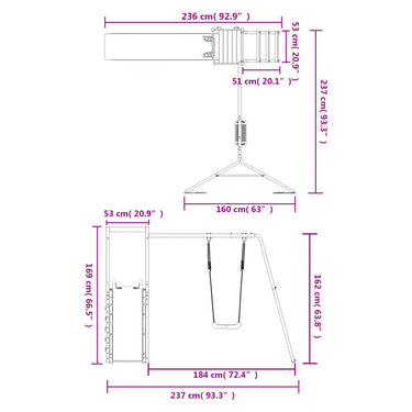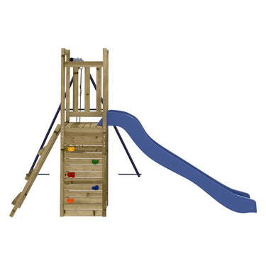 Vous voulez donner à vos enfants la liberté de jouer à la maison ? Cet ensemble de jeu d'extérieur en bois transforme votre jardin en un terrain de jeu propice aux aventures imaginatives ! Matériau durable : ce cadre d'escalade de jardin est fabriqué en bois de pin massif. Le pin massif est un matériau naturel magnifique. Le bois de pin a un grain droit et les nœuds lui confèrent son aspect rustique caractéristique.Cadre robuste et stable : le cadre en bois du cadre de jeu de jardin assure la robustesse et la stabilité. De plus, les pieds en forme de A de la balançoire pour enfants permettent de garder l'équilibre. Centres multi-activités : le cadre d'escalade est doté d'une plate-forme de 90 cm de hauteur et se distingue par son toboggan ondulé, un mur d'escalade, une balançoire simple et un bac à sable. Vos enfants peuvent également inviter leurs amis à s'amuser. Conception réfléchie : les garde-corps en bois qui l'entourent sont conçus pour assurer la sécurité des enfants pendant leurs jeux.Plaisir sans fin : cette maisonnette de jeu extérieure en bois est le moyen idéal pour vos enfants et leurs amis de se divertir, d'avoir plus de temps interactif et de créer des souvenirs pour vous et vos enfants ! Attention :Uniquement pour un usage domestiqueUtilisation extérieure Ne convient pas aux enfants de moins de 3 ans Âge recommandé : 3-8 ans Remarque :Le produit doit être ancré afin de réduire les risques de basculement. Les ancrages ne sont pas inclus. Bon à savoir :Pour faciliter au maximum le montage, chaque produit est livré avec des instructions.