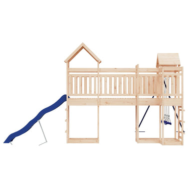 Vous voulez donner à vos enfants la liberté de jouer à la maison ? Cet ensemble de jeu d'extérieur en bois transforme votre jardin en un terrain de jeu propice aux aventures imaginatives ! Bois de pin massif : ce cadre d'escalade de jardin est fabriqué en bois de pin massif. Le pin massif est un matériau naturel magnifique. Le bois de pin a un grain droit et les nœuds lui confèrent son aspect rustique caractéristique.Cadre robuste et stable : le cadre en bois de l'ensemble de jeu assure la robustesse et la stabilité. De plus, les pieds en forme de A de la balançoire pour enfants permettent de garder l'équilibre.Centres multi-activités : le cadre d'escalade est doté d'une plate-forme de 90 cm de hauteur et se distingue par son toboggan ondulé, une double balançoire et des bacs à sable. Vos enfants peuvent également inviter leurs amis à s'amuser.Conception réfléchie : les garde-corps en bois qui entourent l'abri sont conçus pour assurer la sécurité des enfants pendant qu'ils s'amusent. De plus, le toit en bois offre de l'ombre à vos enfants pendant les chaudes journées d'été.Plaisir sans fin : cette aire de jeux de jardin en bois est le moyen idéal pour vos enfants et leurs amis de se divertir, d'avoir plus de temps interactif et de créer des souvenirs pour vous et vos enfants ! Attention :Uniquement pour un usage domestiqueUtilisation extérieureNe convient pas aux enfants de moins de 3 ansÂge recommandé : 3-8 ans Remarque :Le produit doit être ancré afin de réduire les risques de basculement. Les ancres sont incluses. Bon à savoir :Pour faciliter au maximum le montage, chaque produit est livré avec des instructions.