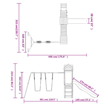 - Dimensions totales : 446 x 332 x 214 cm (L x l x H)