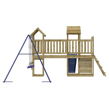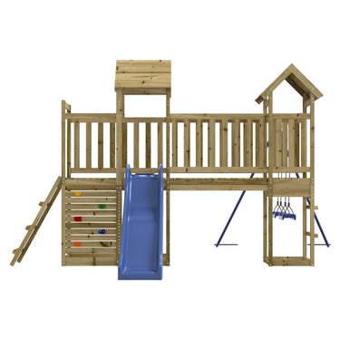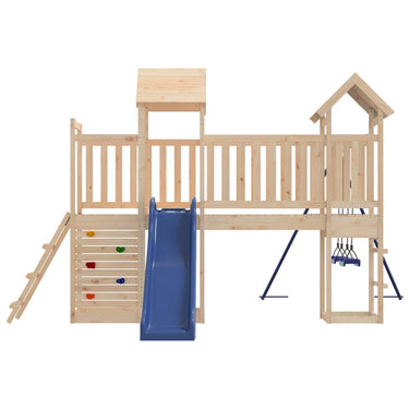 Vous voulez donner à vos enfants la liberté de jouer à la maison ? Cet ensemble de jeu d'extérieur en bois transforme votre jardin en un terrain de jeu propice aux aventures imaginatives ! Matériau durable : ce cadre d'escalade avec toboggan est fabriqué en bois Douglas massif. Le bois Douglas massif est un bois très durable qui fonctionne bien pour l'extérieur. Le bois Douglas est également suffisamment solide pour être travaillé avec un minimum de soin, même sous l'influence des intempéries. Cadre robuste et stable : le cadre en bois du cadre d'escalade de jardin assure la robustesse et la stabilité. De plus, les pieds en forme de A de la balançoire pour enfants permettent de garder l'équilibre.Centres multi-activités : le cadre d'escalade est doté d'une plate-forme de 90 cm de hauteur et se distingue par son toboggan à vagues, une balançoire double, une échelle, une paroi rocheuse ainsi que des bacs à sable. Vos enfants peuvent également inviter leurs amis à se joindre à eux. Conception réfléchie : les balustrades en bois entourant sont conçues pour assurer la sécurité des enfants pendant qu'ils s'amusent. De plus, le toit en bois offre de l'ombre à vos enfants pendant les chaudes journées d'été. Plaisir sans fin : cette maisonnette de jeu extérieure en bois est le moyen idéal pour vos enfants et leurs amis de se divertir, d'avoir plus de temps interactif et de créer des souvenirs pour vous et vos enfants ! Attention :Uniquement pour un usage domestiqueUtilisation extérieure Ne convient pas aux enfants de moins de 3 ans Âge recommandé : 3-8 ans Remarque :Le produit doit être ancré afin de réduire les risques de basculement. Les ancrages ne sont pas inclus. Bon à savoir :Pour faciliter au maximum le montage, chaque produit est livré avec des instructions.