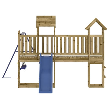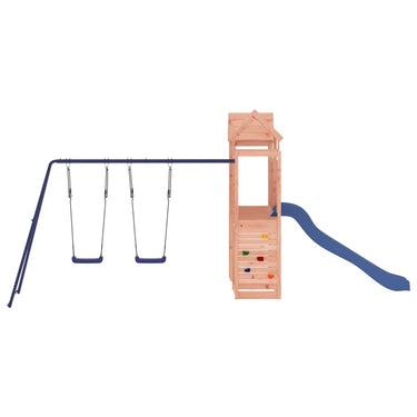 Vous voulez donner à vos enfants la liberté de jouer à la maison ? Cet ensemble de jeu d'extérieur en bois transforme votre jardin en un terrain de jeu propice aux aventures imaginatives ! Matériau durable : ce cadre d'escalade de jardin est fabriqué en bois Douglas massif. Le bois Douglas massif est un bois très durable qui fonctionne bien pour l'extérieur. Le bois Douglas est également suffisamment solide pour être travaillé avec un minimum de soin, même sous l'influence des intempéries.Cadre robuste et stable : le cadre en bois assure la robustesse et la stabilité. De plus, les pieds en forme de A de la balançoire pour enfants permettent de garder l'équilibre.Centres multi-activités : le cadre d'escalade est doté d'une plate-forme de 90 cm de hauteur et se distingue par son toboggan ondulé, une balançoire double, une paroi rocheuse ainsi que des bacs à sable. Vos enfants peuvent également inviter leurs amis à se joindre à eux.Conception réfléchie : les balustrades en bois entourant sont conçues pour assurer la sécurité des enfants pendant qu'ils s'amusent. De plus, le toit en bois offre de l'ombre à vos enfants pendant les chaudes journées d'été.Plaisir sans fin : cette maisonnette de jeu extérieure en bois est le moyen idéal pour vos enfants et leurs amis de se divertir, d'avoir plus de temps interactif et de créer des souvenirs pour vous et vos enfants ! Attention :Uniquement pour un usage domestiqueUtilisation extérieureNe convient pas aux enfants de moins de 3 ansÂge recommandé : 3-8 ans Remarque :Le produit doit être ancré afin de réduire les risques de basculement. Les ancrages ne sont pas inclus. Bon à savoir :Pour faciliter au maximum le montage, chaque produit est livré avec des instructions.