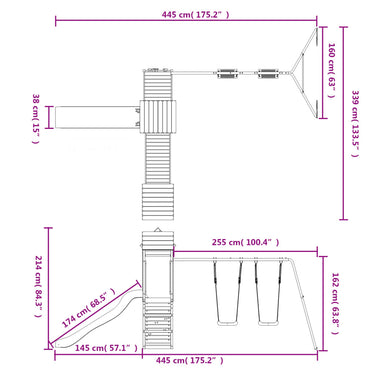 - Dimensions totales : 445 x 339 x 214 cm (L x l x H)