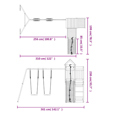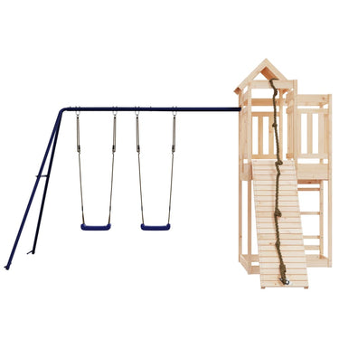 Vous voulez donner à vos enfants la liberté de jouer à la maison ? Cet ensemble de jeu d'extérieur en bois transforme votre jardin en un terrain de jeu propice aux aventures imaginatives ! Bois de douglas massif : ce cadre d'escalade de jardin est fabriqué en bois de douglas massif. Le bois de douglas massif est un bois très durable qui fonctionne bien pour l'extérieur. Le bois de douglas est également suffisamment solide pour être travaillé avec un minimum de soin, même sous l'influence des intempéries.Cadre robuste et stable : le cadre en bois de l'ensemble de jeu assure la robustesse et la stabilité. De plus, les pieds en forme de A de la balançoire pour enfants permettent de garder l'équilibre.Centres multi-activités : le cadre d'escalade est doté d'une plate-forme de 90 cm de hauteur et se distingue par son mur d'escalade avec corde, une double balançoire ainsi que des bacs à sable. Vos enfants peuvent également inviter leurs amis à s'amuser.Conception réfléchie : les garde-corps en bois qui entourent l'abri sont conçus pour assurer la sécurité des enfants pendant qu'ils s'amusent. De plus, le toit en bois offre de l'ombre à vos enfants pendant les chaudes journées d'été.Plaisir sans fin : cette aire de jeux de jardin en bois est le moyen idéal pour vos enfants et leurs amis de se divertir, d'avoir plus de temps interactif et de créer des souvenirs pour vous et vos enfants ! Attention :Uniquement pour un usage domestiqueUtilisation extérieureNe convient pas aux enfants de moins de 3 ansÂge recommandé : 3-8 ans Poids maximal par utilisateur : 45 kg Remarque :Le produit doit être ancré afin de réduire les risques de basculement. Les ancrages ne sont pas inclus. Bon à savoir :Pour faciliter au maximum le montage, chaque produit est livré avec des instructions.