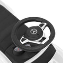 Ce camion à pédales Mercedes-Benz super cool, au design emblématique, est un jouet merveilleux qui offre à vos enfants l'expérience de conduite ultime. Il est officiellement autorisé par Mercedes-Benz. La voiture à enfourcher a un volant, un siège bas et un dossier ergonomique qui facilite la montée et la descente. Le dossier peut également servir de barre de poussée pour les parents. Le grand espace de rangement sous le siège peut accueillir de nombreux jouets et autres fournitures que vos enfants aimeraient emmener dans leurs aventures. Grâce à sa construction en plastique durable, cette voiture à pousser peut supporter jusqu'à 25 kg et convient aux enfants de 12 à 36 mois. Cette voiture jouet améliore également la conscience spatiale, la dextérité et la motricité fine de vos enfants. ATTENTION : CE JOUET N'A PAS DE FREINS !Remarque : 2 piles AA sont nécessaires pour les sons. Les piles ne sont pas incluses dans la livraison.