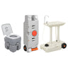 Grâce à sa conception légère et compacte, cet ensemble de toilettes de camping portable et de support pour se laver les mains est parfait pour le camping, les voyages en camping-car, les événements alimentaires, etc. Toilettes pratiques : les toilettes disposent d'un réservoir à déchets de 20 litres qui permet une utilisation suffisante pendant 4 à 5 jours pour un adulte. La toilette mobile est conçue avec une chasse d'eau de type T pour faciliter l'élimination des déchets.Support de lavage de mains multifonctionnel : le lave-mains est équipé d'un distributeur de savon, d'un porte-serviettes et d'un réservoir d'eau douce pour répondre à vos différents besoins. Il permet une utilisation mains libres en appuyant sur la pompe à pied pour obtenir un jet d'eau.Réservoir d'eau à roulettes : le réservoir d'eau offre un stockage d'eau suffisant pour une utilisation d'urgence. Plusieurs sorties d'eau permettent à l'eau d'entrer et de sortir rapidement. La poignée supérieure et les roues permettent de le transporter facilement.Matériau durable : l'ensemble de camping est fabriqué en polyéthylène haute densité solide, ce qui le rend résistant aux chocs et aux impacts pour plus de durabilité.