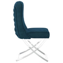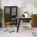 Ajoutez une touche moderne à votre salle à manger ou salon avec cette élégante chaise de salle à manger ! Fabriquée à partir de velours de qualité, cette chaise de salle à manger est conçue de manière esthétique et ergonomique pour faire un point d'attrait confortable dans votre maison. Elle offre à votre famille un endroit confortable pour dîner dans la salle à manger ou lire et se reposer dans le salon. Grâce au siège et au dossier moelleux, cette chaise vous apporte sûrement un confort d'assise optimal. De plus, les pieds en acier inoxydable apportent également une super stabilité et assurent une excellente durabilité.
