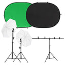 Ce kit de studio photo est un choix idéal pour photographier dans le studio ou sur place. Excellentes performances d'éclairage : en utilisant les lampes à lumière du jour avec une température de couleur de 5500 Kelvin, il est possible de capturer votre sujet d'une manière naturelle. Les parapluies offrent une lumière douce, ce qui évite les ombres agressives.Système de fond pratique : le support de toile de fond est réglable en hauteur et l'écran de fond a un design double face. Les clips offrent une prise ferme pour empêcher le fond de glisser.Ensemble de réflecteurs utile : chaque réflecteur est livré avec différents panneaux de surface. Vous pouvez travailler avec différentes combinaisons pour obtenir des lumières plus chaudes ou plus froides pour la photographie d'intérieur et d'extérieur.Rangement facile : grâce au sac de transport inclus, le kit est facile à ranger et à transporter. Remarque :Chaque produit est livré avec un manuel de montage dans la boîte pour un montage facile.