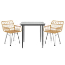 Créez une esthétique convaincante et uniforme dans votre espace extérieur avec cet ensemble de salle à manger de jardin ! Matériau durable : la résine tressée, également connue sous le nom de rotin poly, résiste aux intempéries et est facile à nettoyer. Elle reste belle à l'extérieur pendant une longue période. Elle offre une excellente qualité, commodité et un aspect esthétique.Cadre robuste et stable : les cadres en acier rendent l'ensemble de terrasse robuste et stable pour une utilisation quotidienne à l'extérieur.Dessus de table pratique : le dessus lisse de la table de salle à manger est en verre trempé, facile à nettoyer avec un chiffon humide. De plus, le dessus robuste est parfait pour placer des repas, des boissons et d'autres objets décoratifs.Assise confortable : la chaise de salle à manger est conçue avec un dossier et des accoudoirs pour vous offrir une expérience d'assise confortable.Bouchons de pieds pratiques : l'ensemble de bistro est livré avec des bouchons de pieds qui l'aident à se tenir plus fermement au sol. Remarque :Afin de prolonger la durée de vie de votre mobilier d'extérieur, nous vous recommandons de le protéger avec une housse imperméable.Chaque produit est livré avec un manuel de montage dans la boîte pour un montage facile.